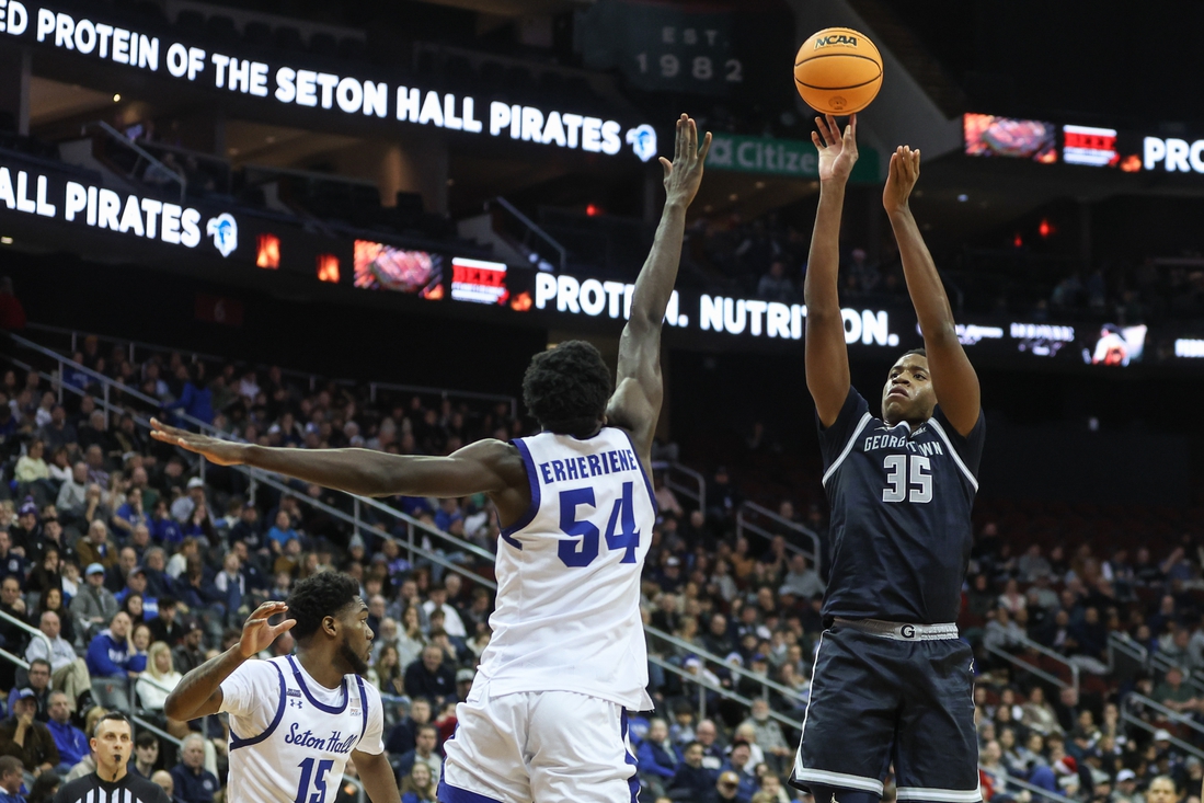 Georgetown opened the game with a 14-3 burst as Seton Hall started the game 1-for-9 from the floor. The lead grew to 23-11 when Jayden Epps converted on a drive.