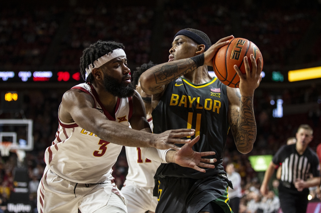 James Akinjo scored 16 points on 6-of-12 shooting, and No. 1 Baylor held on for a 77-72 win over No. 8 Iowa State in a Big 12 matchup Saturday afternoon in Ames, Iowa.