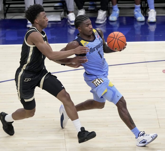 Stevie Mitchell scored a season-high 21 points and Kam Jones added a triple-double as No. 15 Marquette pulled away in the second half for a 76-58 victory over No. 6 Purdue in a nonconference matchup of undefeated teams on Tuesday in Milwaukee.