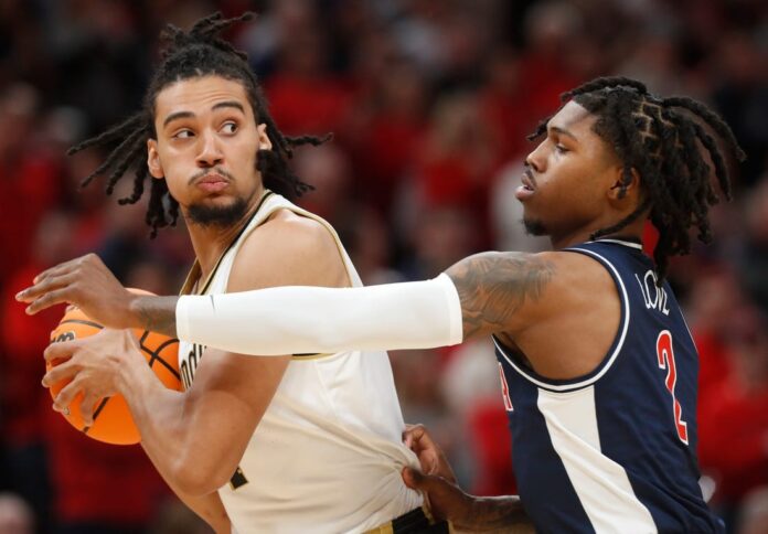 Edey, last season’s national player of the year, stepped up while his teammates struggled, scoring 10 of 16 Purdue points during a late stretch. Edey finished with 22 points, nine rebounds and five assists. Caleb Love scored 29 points to lead Arizona, while Keshad Johnson had 24 points and eight rebounds.