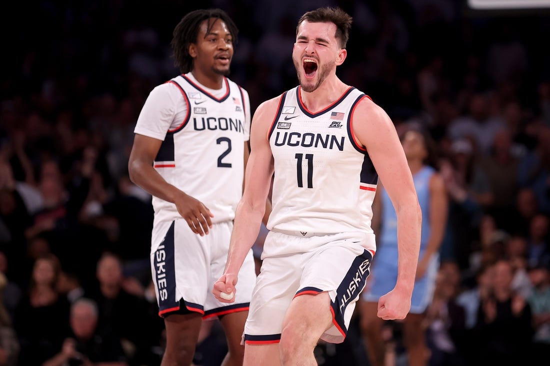 Cam Spencer scored 23 points and No. 5 UConn used some hot shooting to defeat No. 9 North Carolina 87-76 on Tuesday night in the Jimmy V Classic in New York.