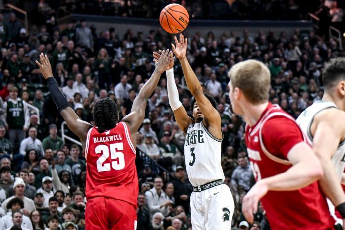Jaden Akins had 19 points and eight rebounds and No. 8 Michigan State pulled away for a pivotal 71-62 Big Ten Conference victory over No. 11 Wisconsin on Sunday in East Lansing, Mich.