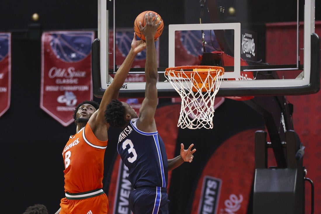Each had a part in helping the Hurricanes lead by as many as six during a competitive first half in which they shot 42.4% from the field. But Miami’s struggles from the free-throw line cost it a chance to pad that advantage as it made only 2 of 9 attempts in the first half. The Hurricanes made only 7 of 17 free throws overall, and once again struggled from 3-point range, shooting 5 of 22 (22.7%).