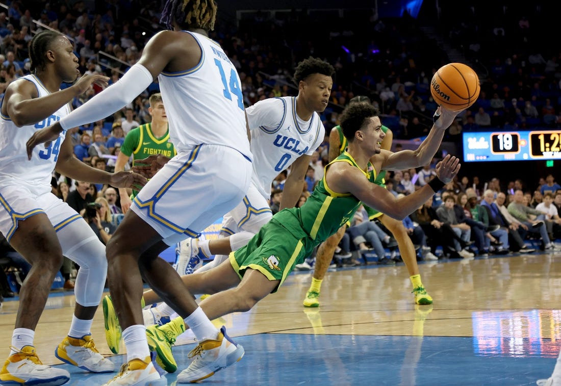 There wasn’t much beauty to the first half for either team. Oregon ran into turnover trouble while UCLA experienced frightful difficulties converting shots and lost Jaquez with two fouls in the first 5:43. He didn’t return until the second half.