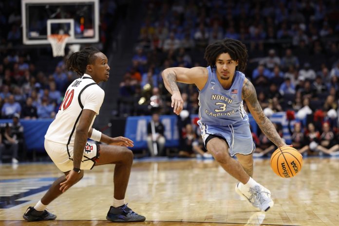 DAYTON, Ohio — RJ Davis connected on all six of his 3-point attempts and finished with a team-high 26 points to lead North Carolina to a 95-68 First Four rout of San Diego State on Tuesday.
