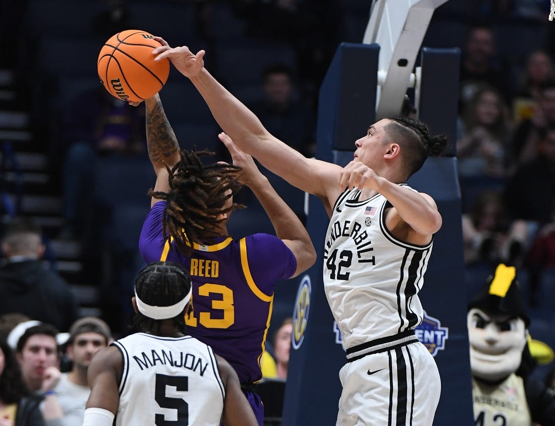 The Commodores continued their winning ways without SEC Defensive Player of the Year Liam Robbins, the team’s leading scorer (15 points per game), rebounder (6.8) and shot blocker (3.2), who is out for the season after injuring his leg against Kentucky on March 1.