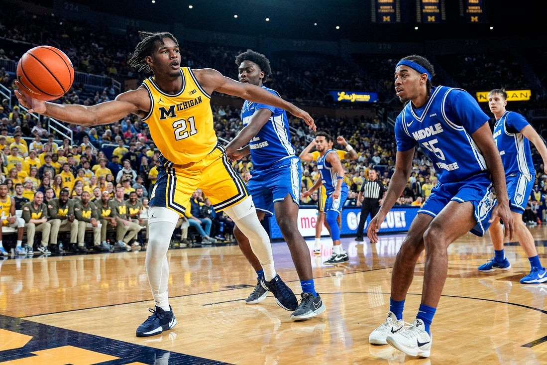 Michigan’s defense is holding opponents to 66.6 points per game, 34.6% shooting overall and 30% from distance. The Wolverines are outrebounding opponents by an average of 45.8-33.0.
