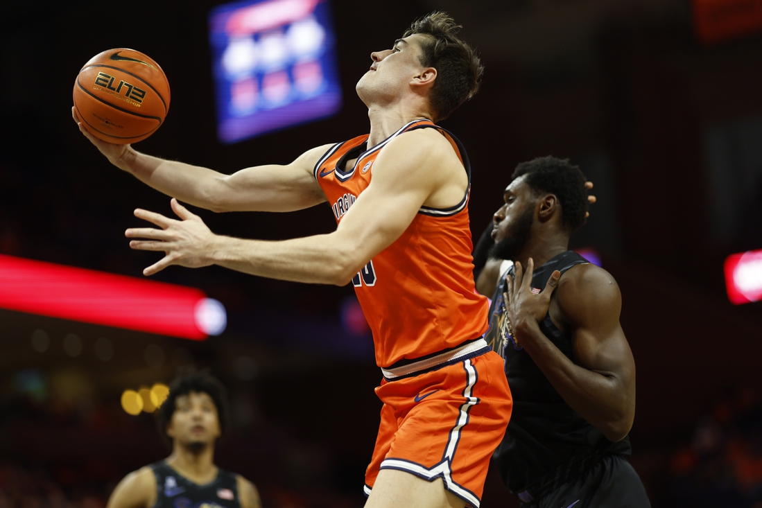 The leading scorers entering play Sunday are Isaac McKneely (12.2 points per game) and Elijah Saunders (10.5) for Virginia, and Rogers (14.6), Colin Smalls (12.5) and Elijah Stephens (11.6) for American.
