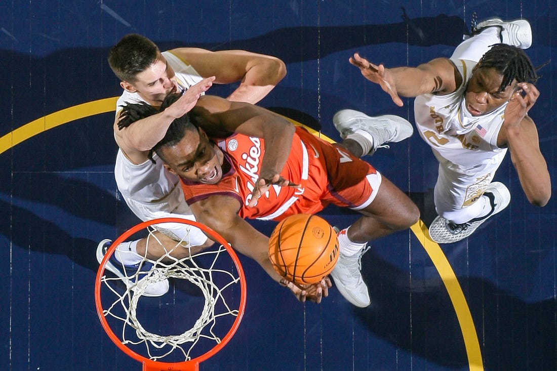 Virginia Tech won the first meeting this season 93-87 in South Bend on Feb. 11. Grant Basile scored 33 points for the Hokies and Nate Laszewski matched that number for the Irish.