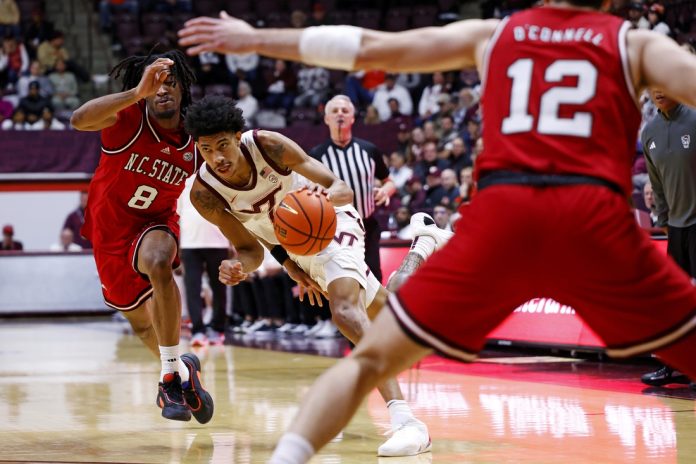 On its last possession, NC State (9-8, 2-4) had its inbounds pass stolen by Virginia Tech’s Ben Burnham, who celebrated with a tomahawk jam to seal the Hokies’ victory.
