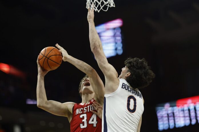 McKneely’s triple gave Virginia an eight-point cushion, but Horne responded with a 3-pointer that sparked a 9-0 NC State run, which McConnell capped with a jumper to slide the Wolfpack ahead 41-40 with 4:27 to play.