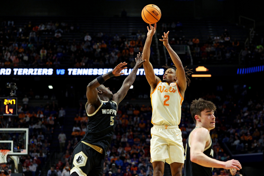 LEXINGTON, Ky. — Chaz Lanier fell just a point shy of his season-high with 29 points while Zakai Zeigler had 12 points and 12 assists to lead No. 2 Tennessee to a 77-62 first-round win over No. 15 Wofford in the Midwest Region on Thursday night at Rupp Arena.