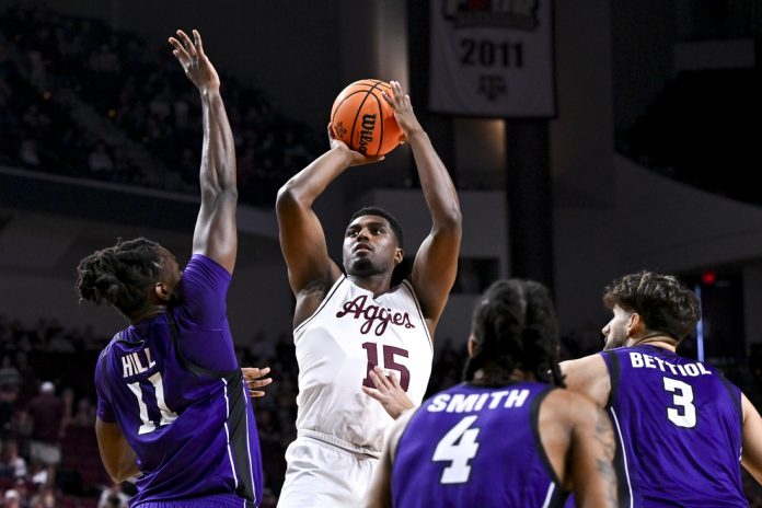 The Aggies made a statement in the early going by scoring the game’s first nine points over the initial 3 1/2 minutes, with seven of those coming from Coleman. Abilene Christian fought back to within 16-12 after Dontrez Williams’ layup with 12:12 left in the half. But A&M swung back, producing a 14-0 run capped by Garcia’s layup with 8:51 to play in the half to pull away to a 30-12 advantage.