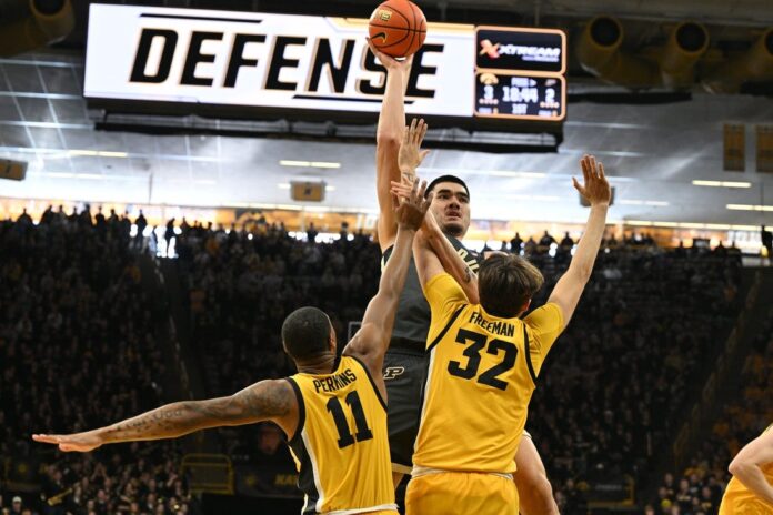 An 8-0 run gave the Boilermakers a 19-point lead midway through the second half. Braden Smith and Mason Gillis made back-to-back 3-pointers and Loyer made a jump shot to increase Purdue’s advantage to 64-45 with 13:02 to go.