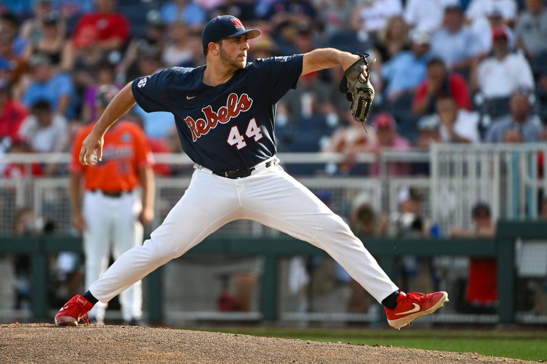 Dylan DeLucia surrendered just one run in 7 2/3 innings and struck out 10 as Ole Miss defeated Auburn 5-1 in the College World Series on Saturday night in Omaha, Neb.