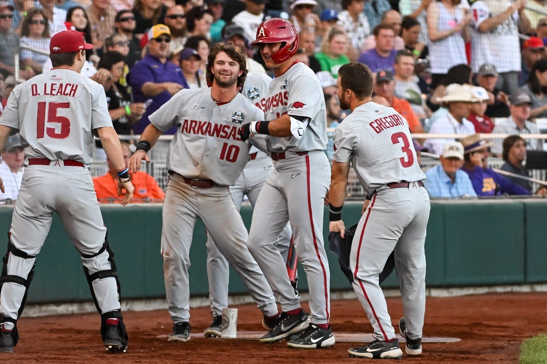 The Razorbacks (48-21) move on to face Ole Miss in the Bracket 2 final on Wednesday. The Razorbacks need to beat the Rebels on both Wednesday and Thursday to advance to the best-of-three championship series, while Ole Miss would advance with just one more win.
