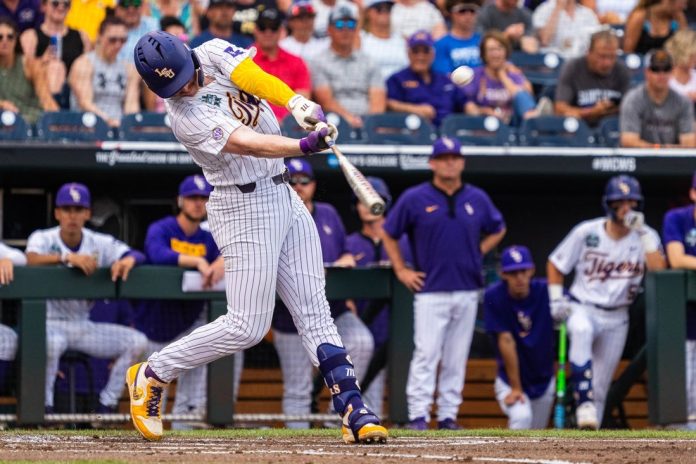 The Tigers struck right back, with Jake Brown driving in LSU’s first run of the game with an RBI single off UCLA starter Landon Stump. Jared Jones then deposited his 21st homer of the season into the right-center bleachers, a three-run shot to give the Tigers a 4-3 lead.