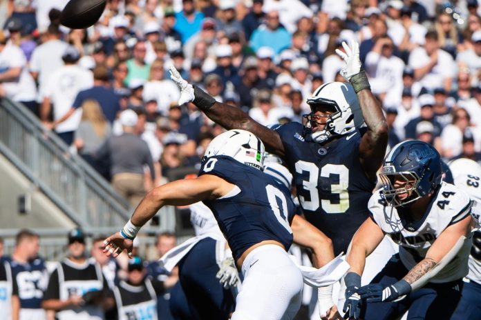 Penn State defensive end Dani Dennis-Sutton recorded five tackles (four solo) and forced two fumbles against Nevada. He also had a pass breakup and a QB hurry.