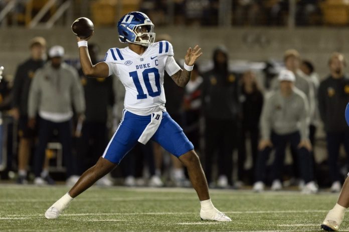 Que’Sean Brown caught six passes for 104 yards and one touchdown, Cooper Barkate had a scoring catch and Duke racked up four interceptions and six sacks. The Blue Devils and Virginia are the lone ACC squads with 3-0 league records.
