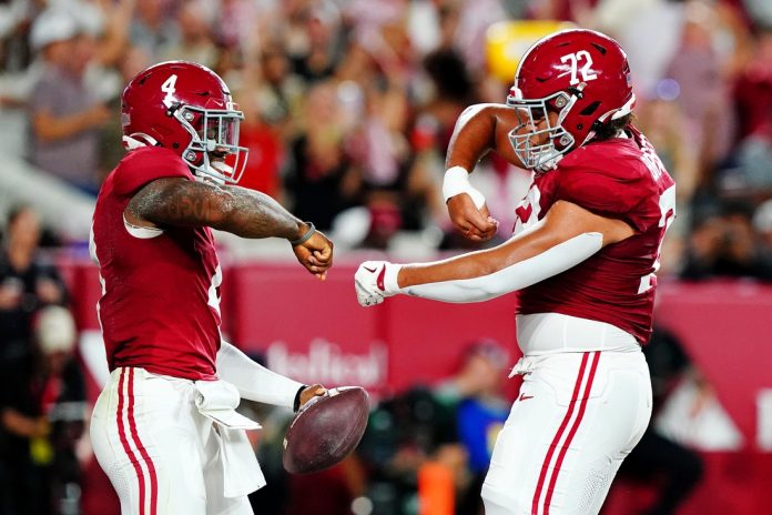 Milroe has now thrown for 964 yards with 10 touchdowns against a lone interception this season. He has added a pair of touchdowns on the ground in each of the Crimson Tide’s first four games while racking up 273 yards on the ground.