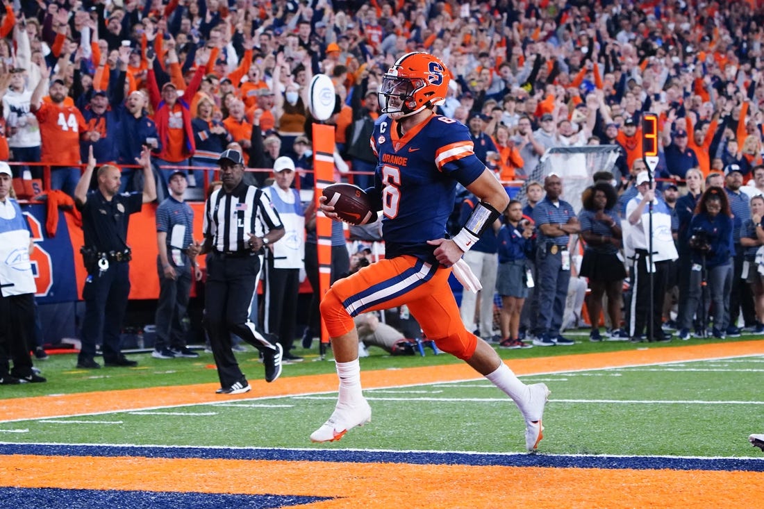 Trebor Pena ignited Syracuse by returning the game’s opening kickoff 57 yards. The Orange offense needed only five plays to cover the final 41 yards, capped by a 17-yard TD scramble by Shrader.