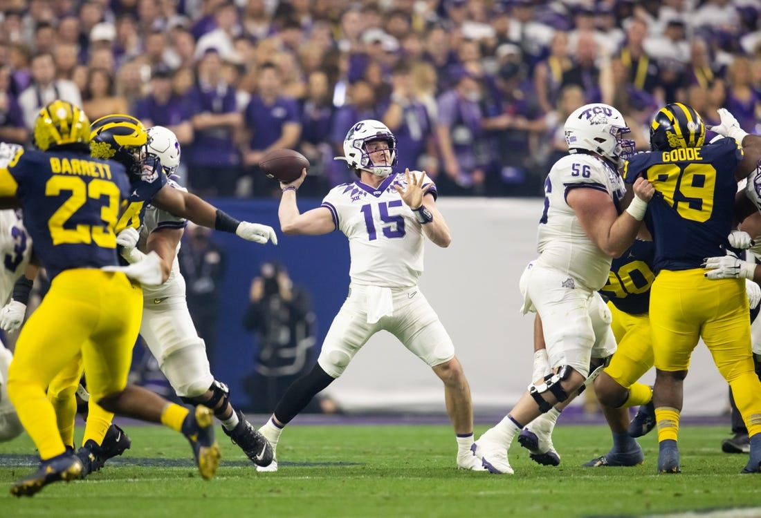 Duggan capped his fourth season with the Horned Frogs by traveling to New York as a Heisman Trophy finalist, where he shared company with Ohio State’s CJ Stroud and Georgia’s Stetson Bennett. He finished runner-up to USC quarterback Caleb Williams but the trophy he’s after at SoFi Stadium in Inglewood, Calif., on Monday night is not an individual honor. He wants what Bennett has.