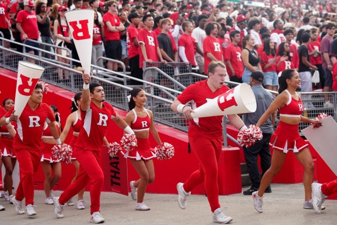 The game was delayed by an hour because of lightning in the area. It didn’t take Rutgers long to score once the action was underway.