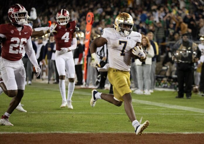 Notre Dame’s special teams also contributed, as Javontae Jean-Baptiste returned a blocked field goal 60 yards for a touchdown.