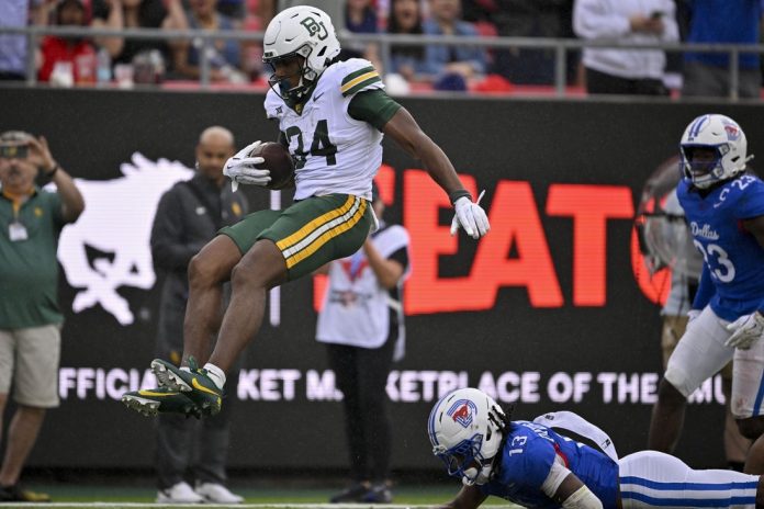 Running back Bryson Washington scored a touchdown in the first overtime after Jaelyn Davis-Robinson put the Bears on the two-yard line after committing a pass interference penalty in the end zone. It was Washington’s second touchdown of the day on 115 yards rushing.