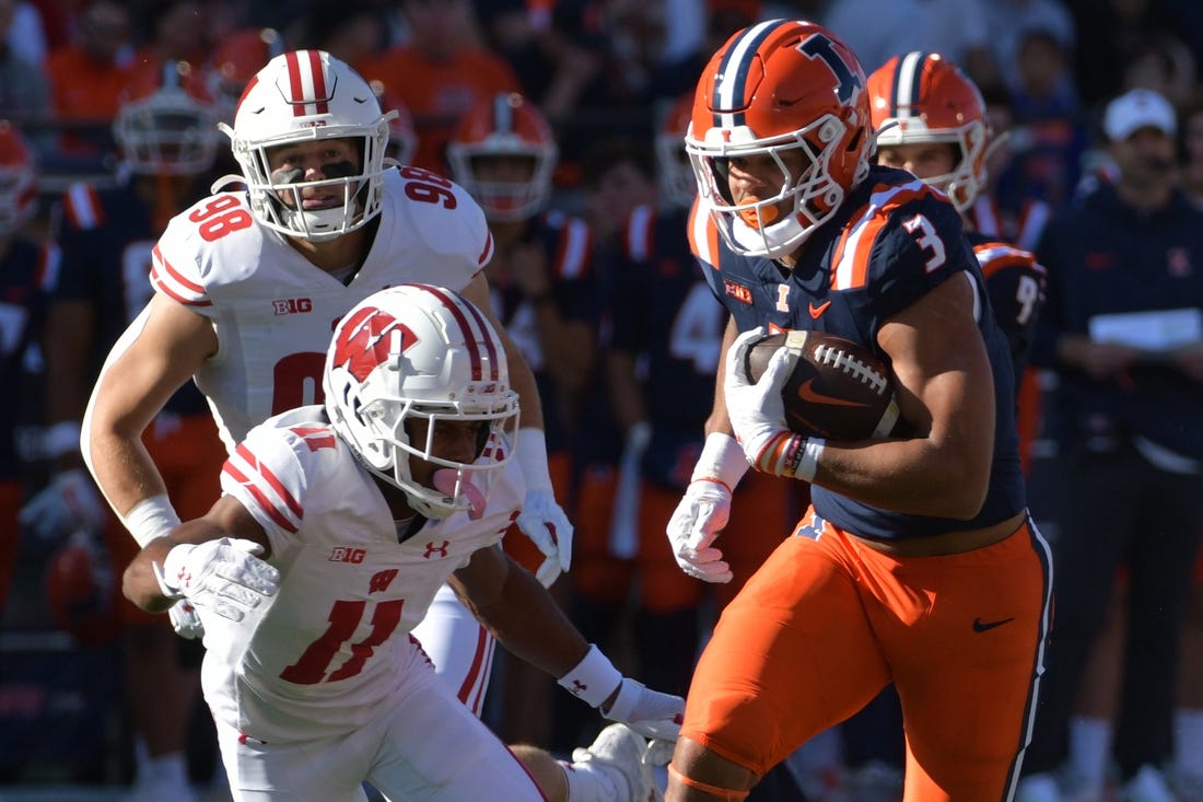 Luke Altmyer, a sophomore transfer from Ole Miss, completed 13 of 21 passes for 100 yards, including touchdowns of 1 and 3 yards to stake Illinois (3-5, 1-4) to a 14-0 lead. He also ran for 100 yards.