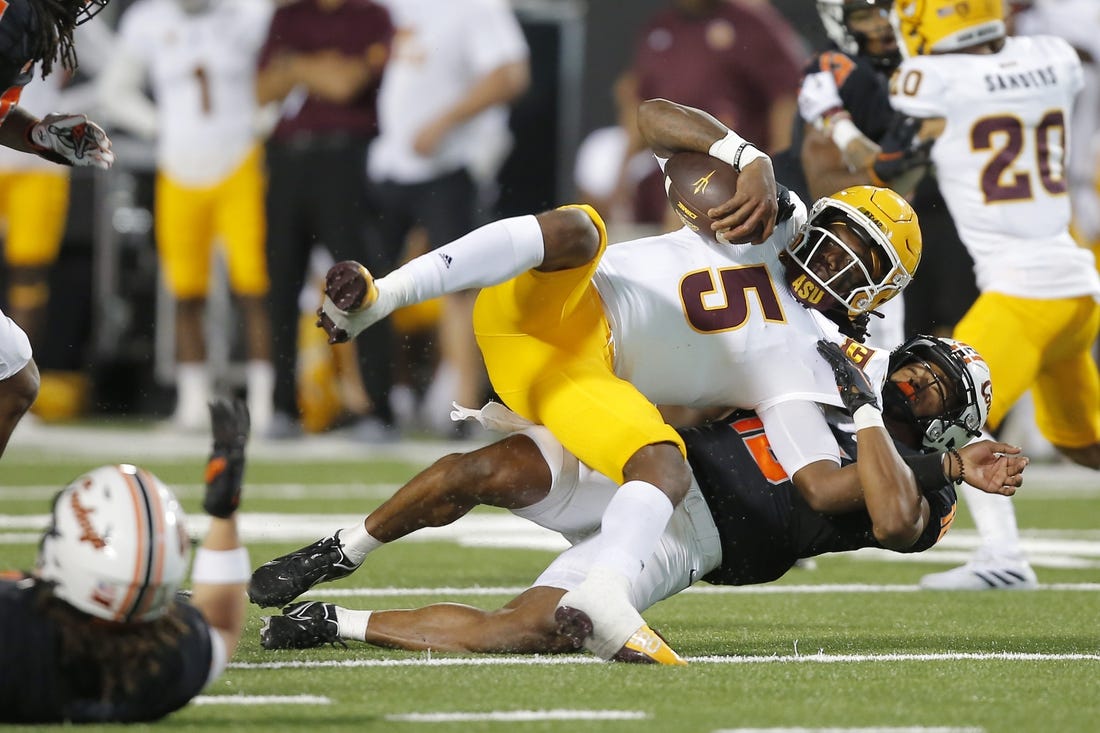 Florida transfer Emory Jones matched nearly half of that total on one pass, a 73-yard completion to Giovanni Sanders that set up a 1-yard touchdown run by Xazavian Valladay on Arizona State’s first drive to open the second half.