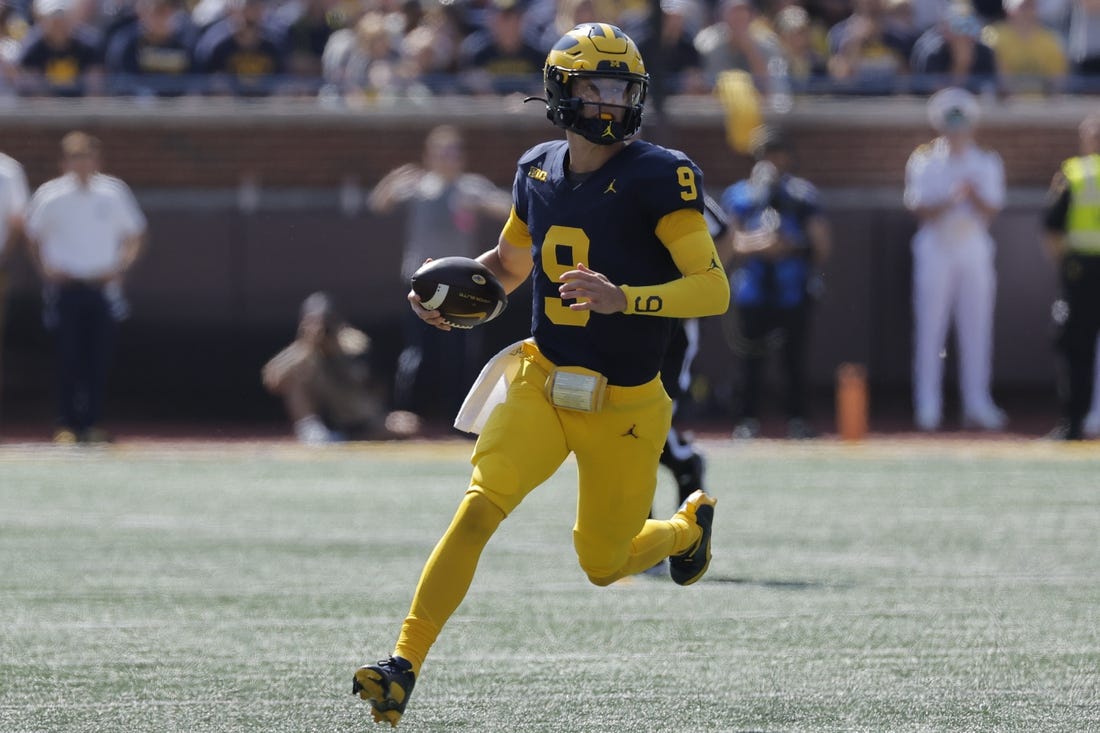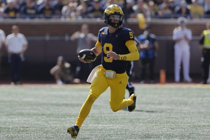 Michigan tied it thanks to a seven-play, 94-yard drive. A double-handoff flea flicker set McCarthy up for a 35-yard connection to tight end Colston Loveland, and on the next play Corum scored from 2 yards out with 5:56 left in the first.