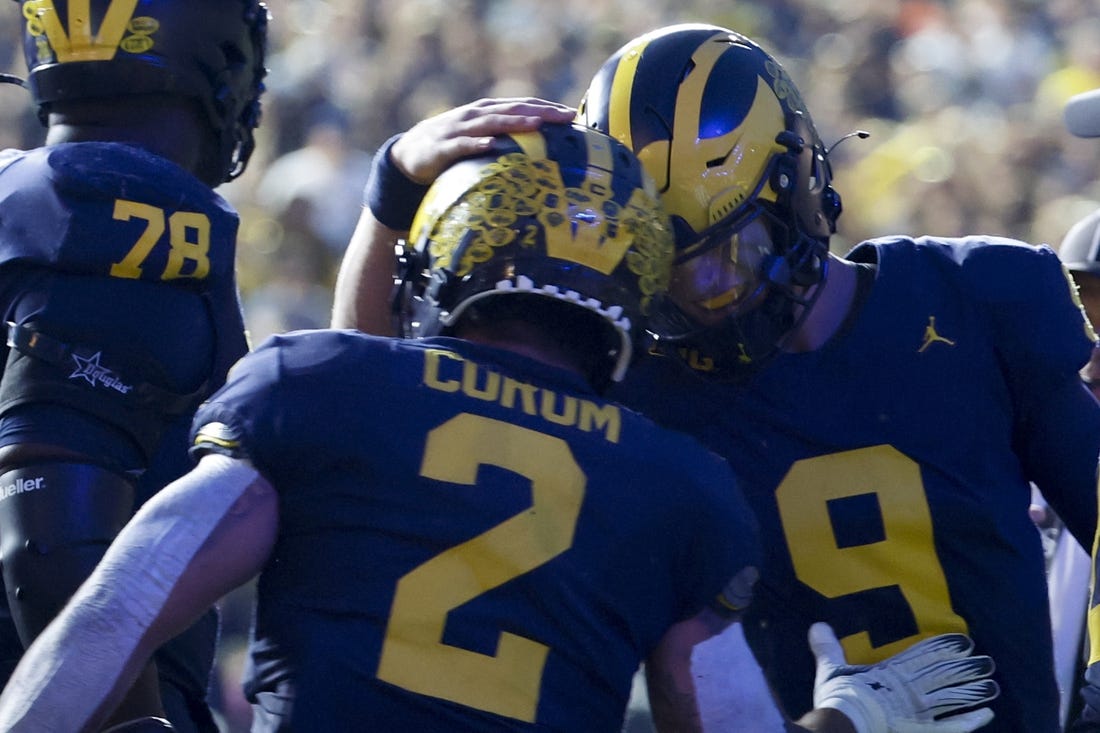 Corum’s 54-yard run on the Wolverines’ first play on offense set them up to strike first. Corum did the honors from 4 yards out for a 7-0 lead at the 10:44 mark of the quarter.
