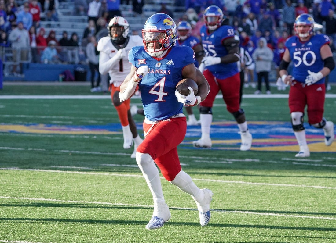 Kansas running back Devin Neal had 228 rushing yards and 110 receiving yards (six receptions) to carry the Jayhawks over Oklahoma State.