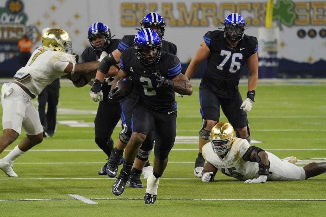 BYU trailed by 19 points early in the second half and worked its way back into contention. The game was still in reach for the Cougars late, but they failed to convert a fourth down with 3:37 to play and Notre Dame was able to run out the clock, exploiting a weary BYU defense that was on the field for nearly 41 minutes and surrendered 496 yards.