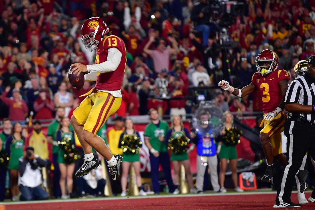 Caleb Williams rushed for three touchdowns and passed for another, and No. 6-ranked Southern California completed its best regular season since 2008 with a 38-27 win over rival and No. 15-ranked Notre Dame on Saturday in Los Angeles.