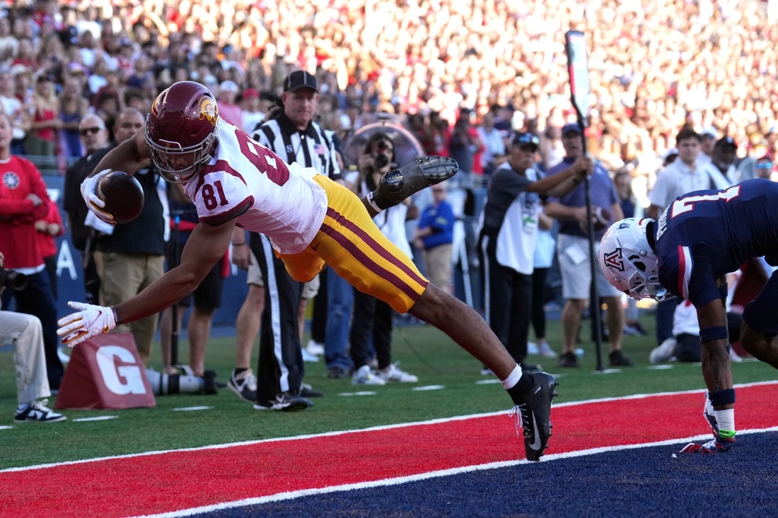 The Trojans (7-1, 5-1 Pac-12), played without receivers Jordan Addison (injury) and Mario Williams (unknown), but Tahj Washington (seven catches, 118 yards, two touchdowns) and Kyle Ford (six catches, 114 yards, one TD) helped keep the passing game on track.