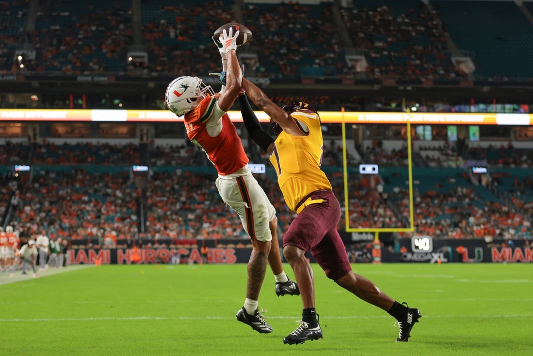 The No. 5 Hurricanes (2-0) improved to 8-0 lifetime against the Wildcats (0-2), who were held to a Juan Dominguez 32-yard field goal Saturday and have yet to score a touchdown this season. That score cut Miami’s lead to 21-3 with 3:08 left in the second quarter.