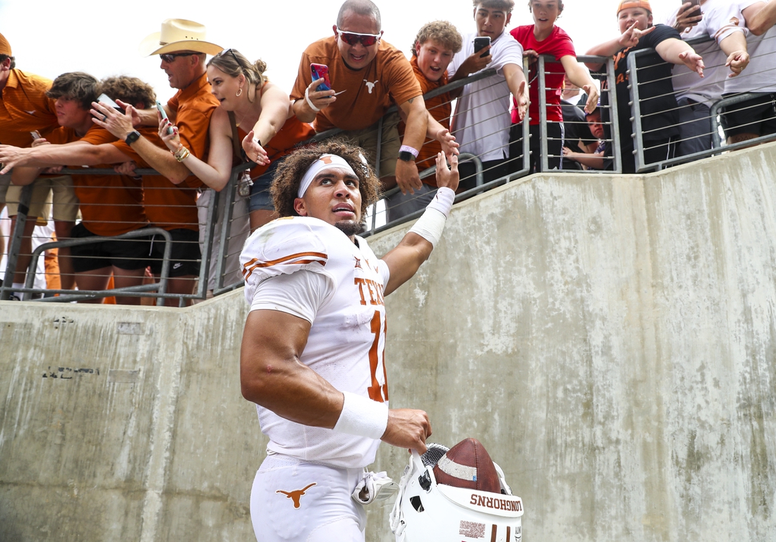 Thompson’s candidacy to take over permanently for Ehlinger got a boost in the bowl when he threw for four touchdowns in the second half. Following preseason camp, Hudson Card earned the starting nod from new coach Steve Sarkisian, who then turned to Thompson to take over the starting role in Game 3.