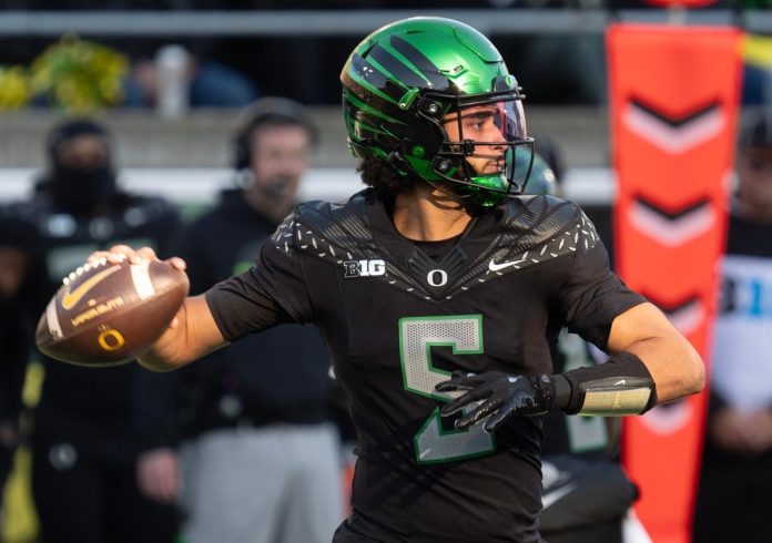 Oregon’s move came at the expense of Ole Miss, which slipped to No. 7 on an idle week (and amid the saga of whether Rebels coach Lane Kiffin will leave the team for LSU or Florida after the season). The Ducks’ 42-27 home win over the Trojans became the best victory on Oregon’s resume.