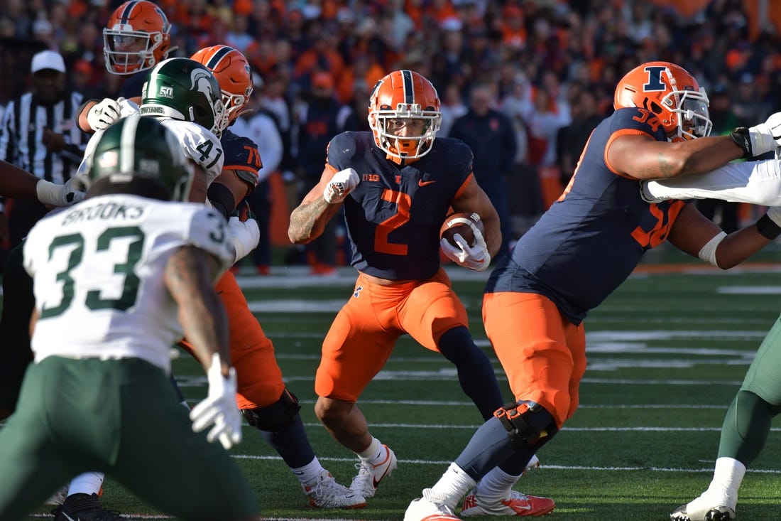 Tommy DeVito completed 25 of 37 passes for 288 yards and a pair of scoring strikes to Isaiah Williams, and Chase Brown rushed for 136 yards, but Illinois couldn’t overcome 23 unanswered points from the Spartans.