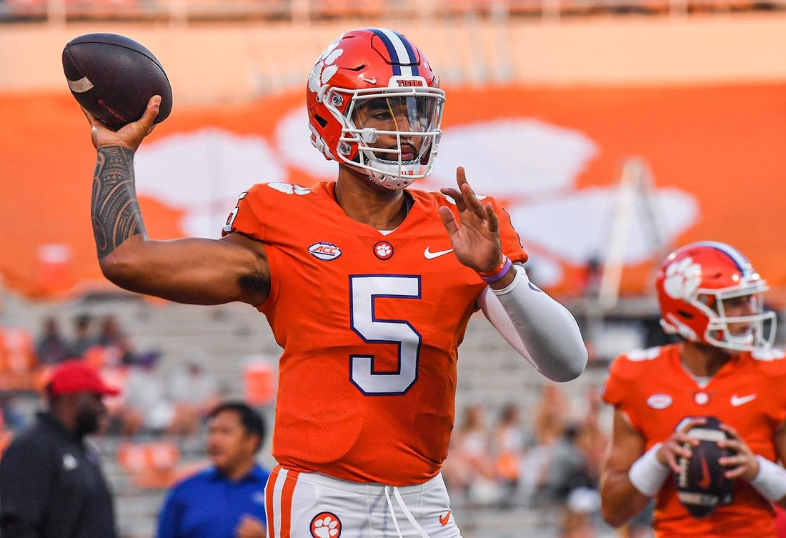 DJ Uiagalelei passed for 221 yards and two touchdowns for the Tigers (3-0). Phil Mafah and Kobe Pace rushed for touchdowns, and Beaux Collins and Antonio Williams caught scoring passes for Clemson.