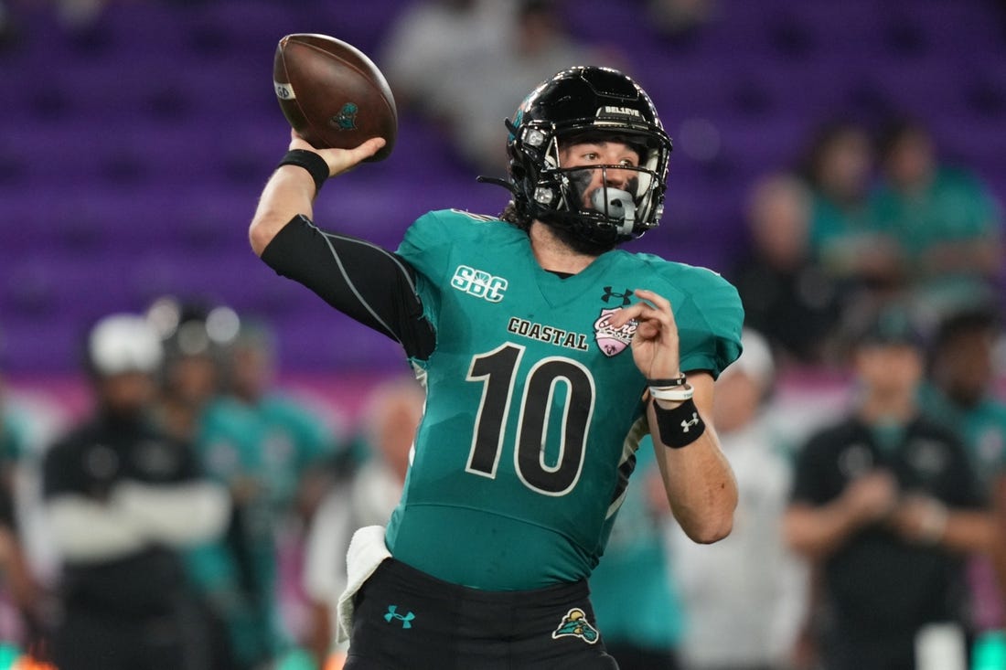 McCall is 20-2 as a starting quarterback. The two-time Sun Belt Player of the Year set an NCAA record for passing efficiency (207.6) last season and has 54 touchdowns against just six interceptions for the Chanticleers.