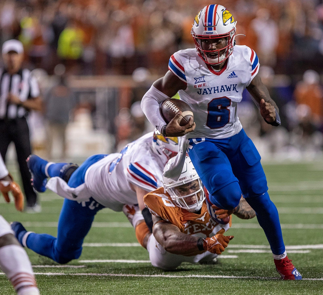 Devin Neal impressed Leipold enough for him not to press a freshman redshirt and instead play the prize recruit in the Jayhawks’ 2021 class. Neal recorded 143 yards rushing and three touchdowns in the Texas win. Kwamie Lassiter had eight catches as Kansas enjoyed a rare day where skill players performed consistently well across the board.