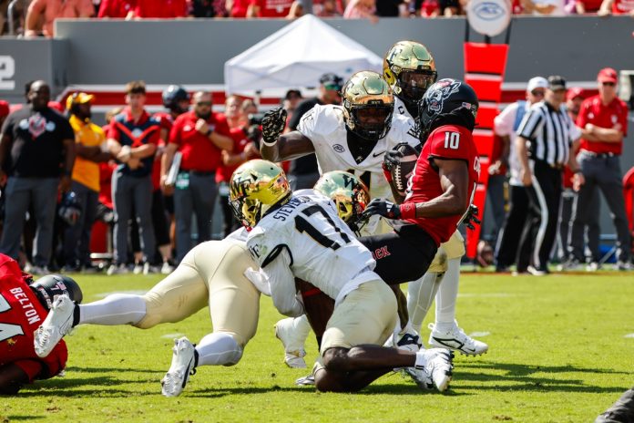 McCall, in his first game after a 2 1/2-game injury absence, exited after absorbing a vicious hit as he scrambled on the Wolfpack’s first possession. Multiple Demon Deacons converged on McCall, with his helmet and the fumble popping loose. Wake Forest’s Evan Slocum made an 88-yard return on the fumble to the Wolfpack 2-yard line as NC State medical staff rushed onto the field to tend to McCall.