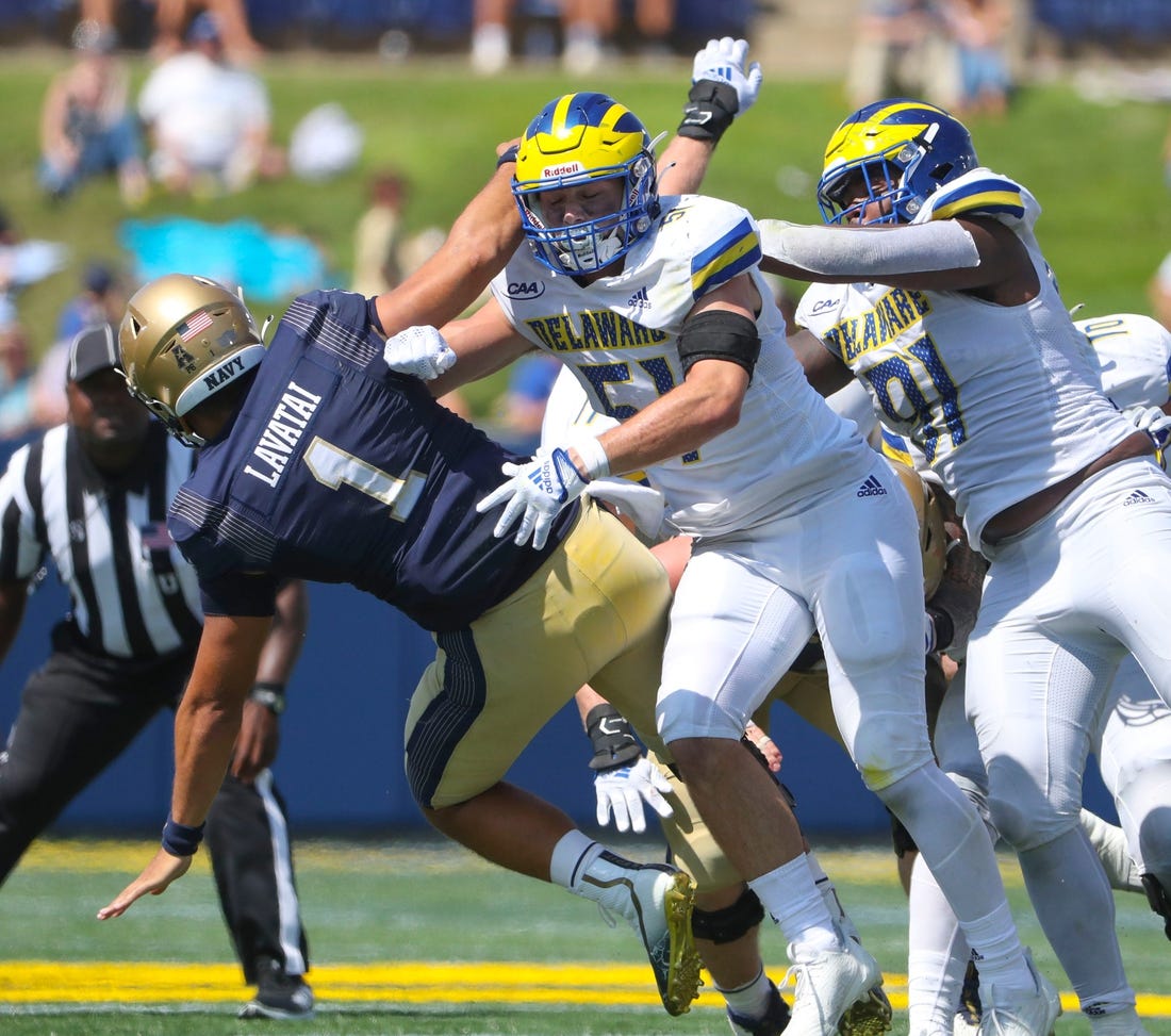 Navy (0-1, 0-0 AAC) outperformed Delaware in several categories. The Blue Hens were held to 202 yards total offense and outgained by Navy 184-13 in rushing yards. But the Midshipmen couldn’t translate those advantages into points, lost three fumbles and went 0-for-3 on fourth downs in the 14-7 defeat.