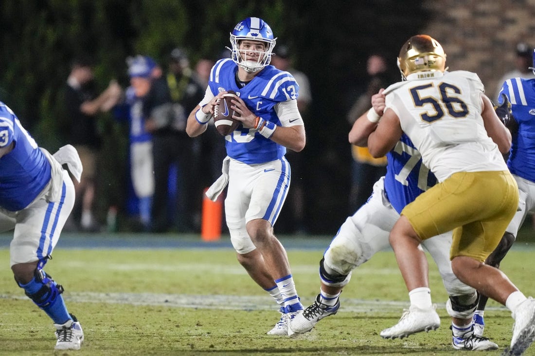 Duke quarterback Riley Leonard is now considered day-to-day after suffering a high ankle sprain nine days ago against Notre Dame.