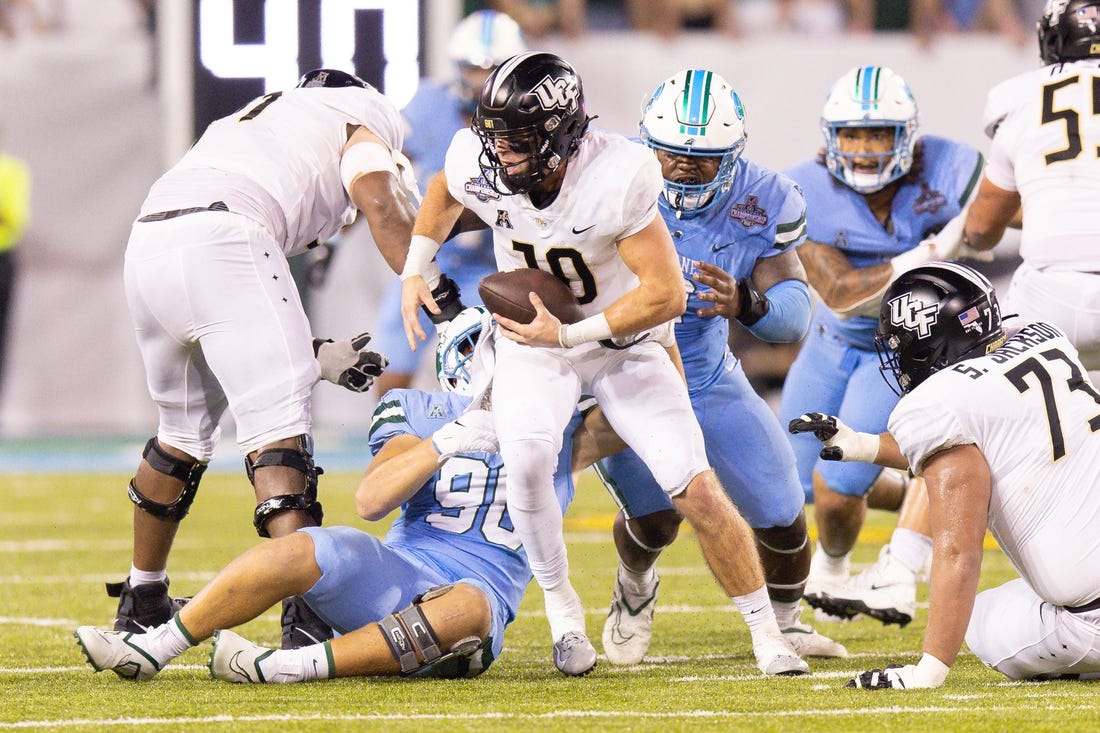 The Knights are armed with the nation’s seventh-best rushing offense, averaging 236 yards per game on the ground. It’s a three-headed rushing attack that powers UCF; quarterback John Rhys Plumlee has 840 yards and 11 touchdowns on the ground, tailback Isaiah Bowser has 760 yards and 14 scores, and RJ Harvey has 767 yards and five TDs.
