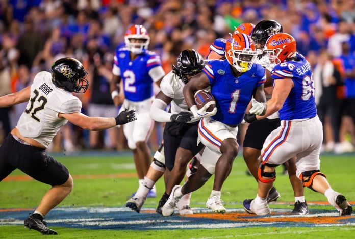 In improving to 3-2, the Gators limited the Knights (3-2) to 108 yards on 40 carries, over 200 yards less than their per-game average entering Saturday (326.0). Florida held top UCF rusher RJ Harvey to 75 yards on 16 attempts.