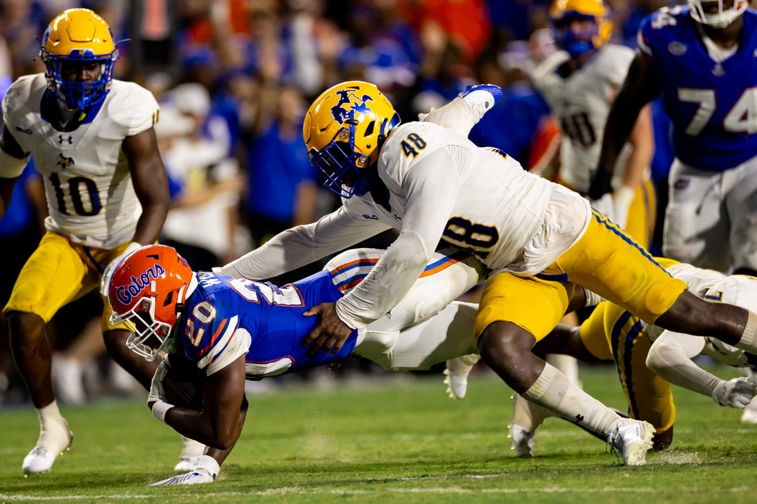 Johnson’s 15 carries included scoring runs of 2 yards in the first quarter and 8 yards in the third for the Gators (1-1). Treyaun Webb (14 rushes, 71 yards) also ran for two touchdowns.